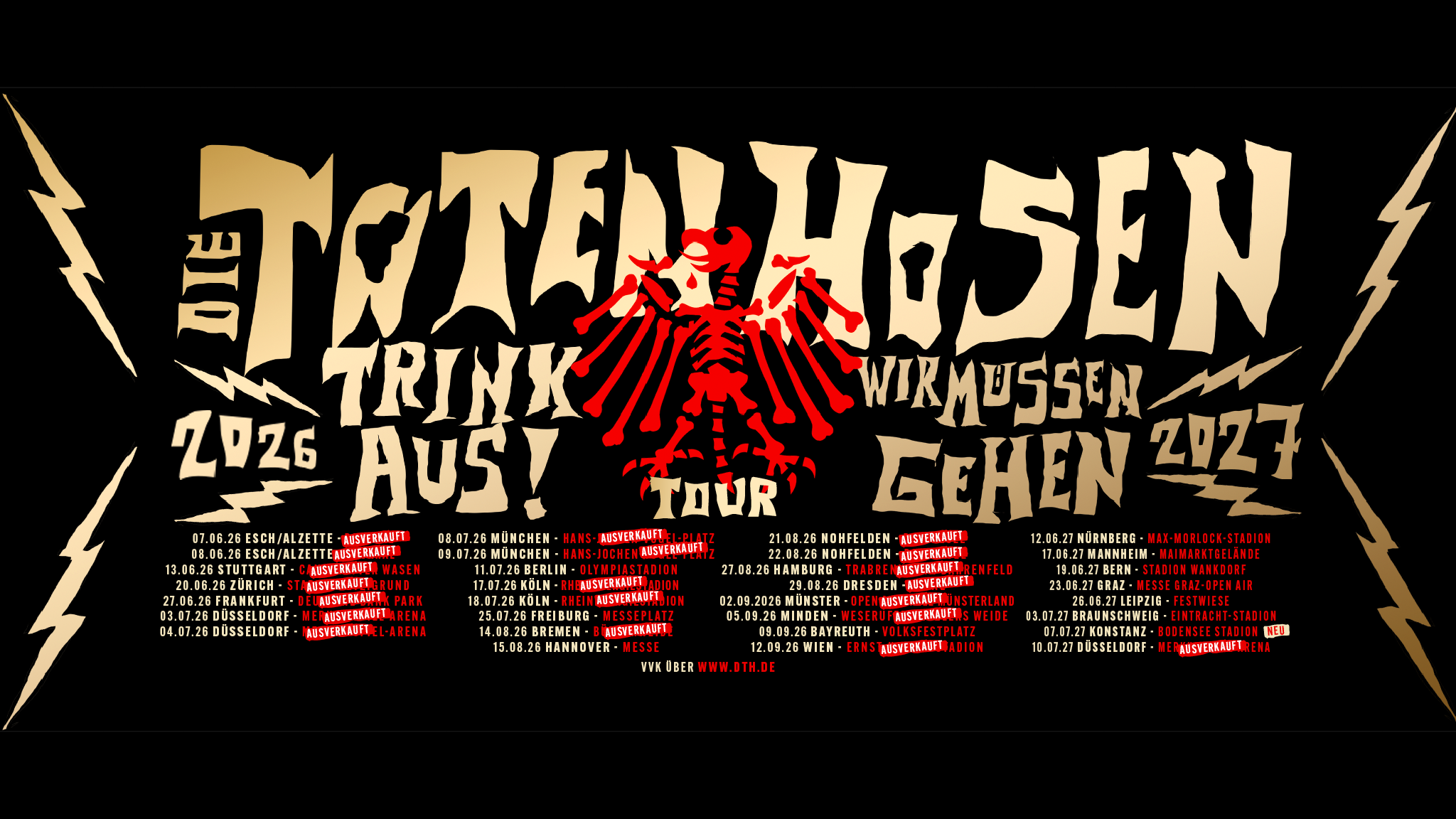 Deutsche Bank Park Frankfurt Mörfelder Landstraße 362, Frankfurt am Main, GermanyMit der M72 World Tour setzen Metallica ihre monumentale Reise fort und bringen ihr revolutionäres No-Repeat-Weekend-Konzept auch 2026 zurück nach Europa. An zwei Abenden in derselben Stadt spielt die Band jeweils komplett unterschiedliche Setlists – keine Songwiederholungen, keine Kompromisse. Jede Show steht für sich und wird von wechselnden Support-Acts begleitet. Die M72 World Tour ist […]