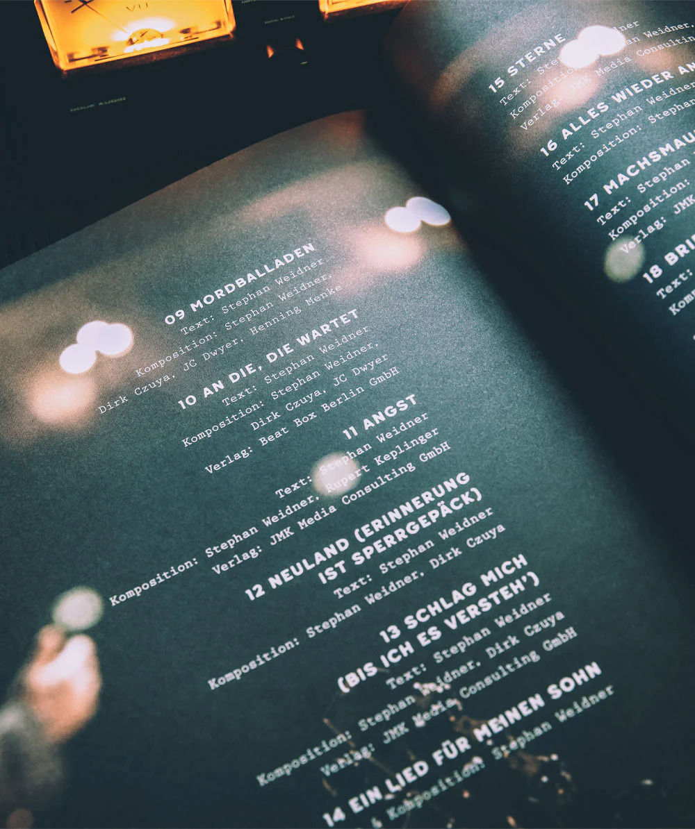 Wer einen kurzen Blick ins Booklet wirft, findet neben den Musikern auch etliche Personen, die großartige Arbeit zu diesem Werk beigesteuert haben. Neben der Liveshow auf Blu-ray und den Tonträgern erhaltet ihr sehr tiefe Einblicke in die Entstehung des Akustikgewands. Wer war beteiligt? Wie lief die Produktion? Wie entsteht so eine Idee? Und wie beginnt man überhaupt mit der Umsetzung? Der W und seine Kollegen könnten authentischer kaum sein und jeder Fan, der wirklich Interesse an der Musik von Stephan Weidner hat, findet hier, was er sucht.
